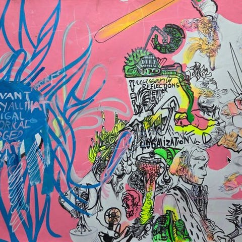 Onyis Martin arbejder med figuren af ravnen med en vaske-teknik, som ikke er uden at minde om Barthélémy Togo.