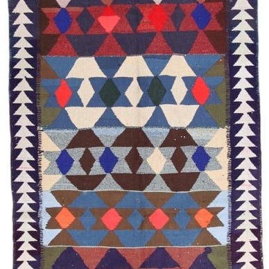 Armien oprindelse Kelim Modern Caucus Kilim – Vintage Armenian Art, ét håndlavet tæppe af uld på bomuld i meget god stand, professionelt renset, 223 × 165 cm, fra midten af det 20. århundrede. Klik på den blå "gå til varen" knap, for at købe eller byde på denne vare. Den samlede pris vil blive vist inden du afgiver dit bud.