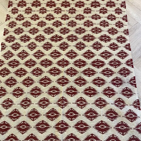 Oprindelse Marokko, model Soumak farvet kelim (unused) håndvævet uld, størrelse 146 x 202 cm, i meget god stand og professionelt rengjort. Klik på den blå "gå til varen" knap, for at købe eller byde på denne vare. Den samlede pris vil blive vist inden du afgiver dit bud.