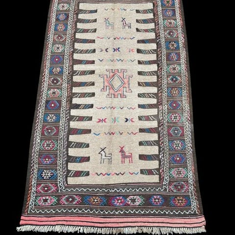 Det er et tæppe, der er vævet med traditionelle motiver fra Yuruk-regionen.