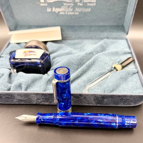 unik og farverigt udseende. Pennen er udstyret med en høj-kvalitets 18kt guldfarvet nib (Bock) fremstillet i Tyskland som