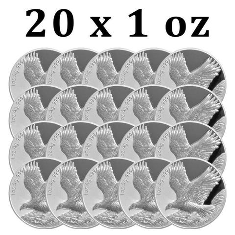 Fem 2025 Samoa Golden Eagle 1 oz .999 fin sølv prooflike mønter, hver i kapsel, diameter 40 mm, pålydende 1 dollar, samlet mængde 10.000. Klik på den blå "gå til varen" knap, for at købe eller byde på denne vare. Den samlede pris vil blive vist inden du afgiver dit bud.