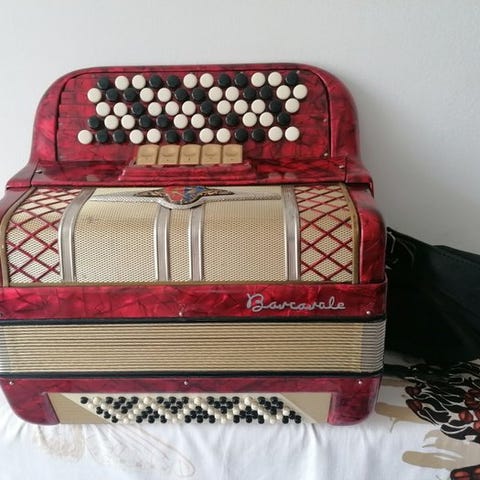 Ud over den iøjnefaldende farvekombination på denne harmonika er også B-grebet et interessant kendetegn ved denne harmonika, som giver en smuk klangkasse med sig.