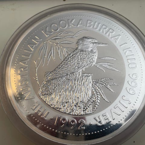 2004 Kookaburra sølvmønt fra Australien i BU-stand, vægt 31,1 g og diameter 40,6 mm. Klik på den blå "gå til varen" knap, for at købe eller byde på denne vare. Den samlede pris vil blive vist inden du afgiver dit bud.