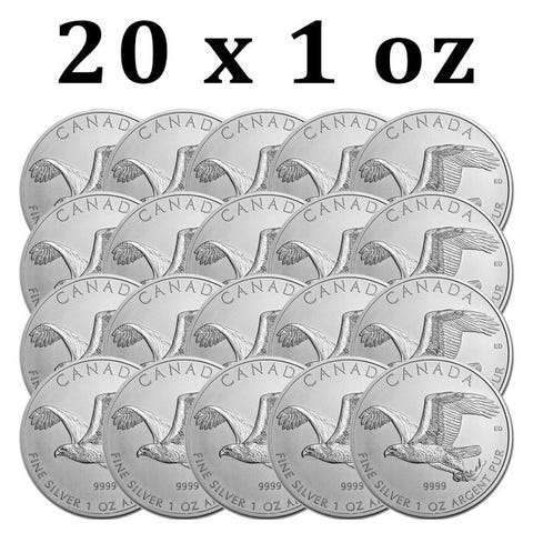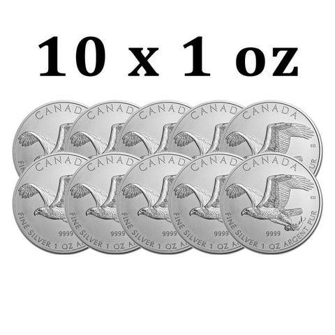 Denne anden udgivelse i Royal Canadian Mints Birds of Prey-serie fejrer den ikoniske Bald Eagle. Serien er efterfølgeren til den populære Canadian Wildlife Series og fortsætter med at tilbyde det bredt ønskede rene sølv som bulion. Dette mønt afbiller en frygtløs havørn i flugt med en fornem fangst, mens vægt og renhed er angivet nedenfor. Aversen på disse .9999 fine sølvmønter