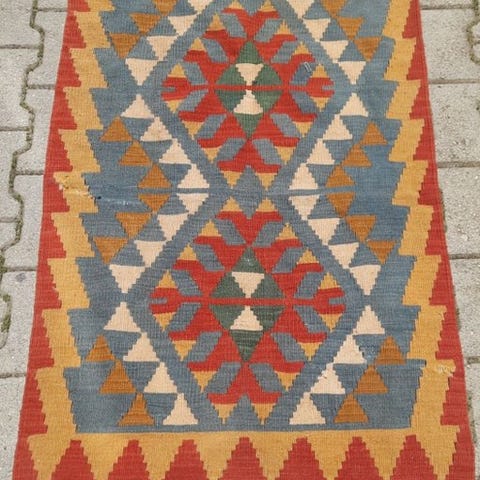 Tyrkiet, tyrkisk Kilim-tæppe, uld på bomuld, 285 cm × 160 cm, 8 kg, slutningen af det 20. århundrede, i meget god stand og professionelt rengjort. Klik på den blå "gå til varen" knap, for at købe eller byde på denne vare. Den samlede pris vil blive vist inden du afgiver dit bud.