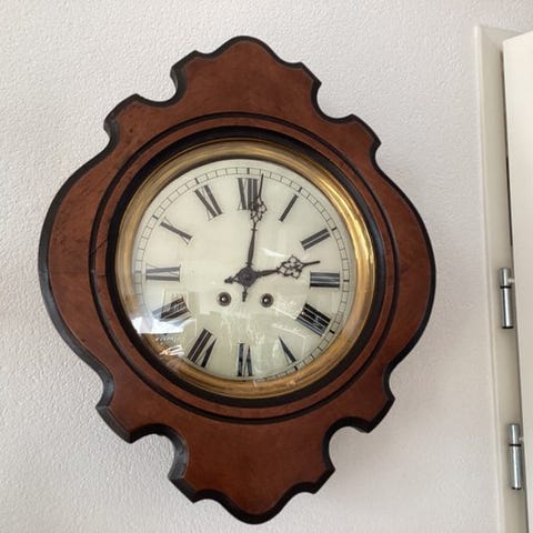 Denne skoleur stammer fra slutningen af forrige århundrede og er ifølge adressen på urskiven i England lavet af "Greenwood Colchester".