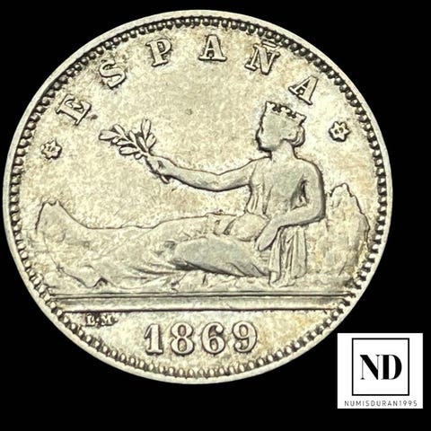 Sølvpeseta fra 1902 af Alfonso XIII, præget i Madrid, vægt 4,97 g Ag, tilstand uden certifikat. Klik på den blå "gå til varen" knap, for at købe eller byde på denne vare. Den samlede pris vil blive vist inden du afgiver dit bud.