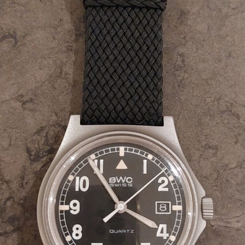 A. Lange & Söhne B-Uhr FL 23883 Militær observationsur, reference FL23883, 1944, håndoptrukket bevægelse, stålhus, 55 mm i diameter (61 mm med kronen), sort urskive, lang sort læderrem, i særdeles god stand med få brugsspor. Klik på den blå "gå til varen" knap, for at købe eller byde på denne vare. Den samlede pris vil blive vist inden du afgiver dit bud.