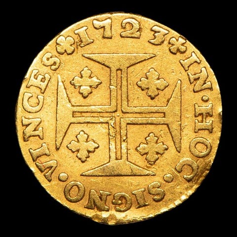 Portugisisk guldbit fra 1729 under D. João V’s regeringstid, uden klassificering, nominel værdi 480 réis. Klik på den blå "gå til varen" knap, for at købe eller byde på denne vare. Den samlede pris vil blive vist inden du afgiver dit bud.