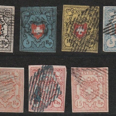 Schweiz 1852 - Samling af forskellige rayon-frimærker - SBK nrs 14I, 15II, 16...