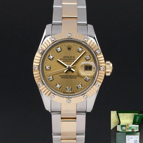 Rolex original champagne diamant urskive med guldvisere