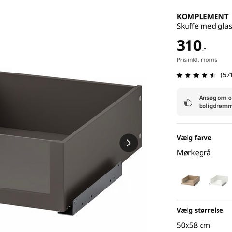 IKEA komplement - 2 stk udtræksbakke og en bøjlestang. Passer til 100cm bredt PAX skab.