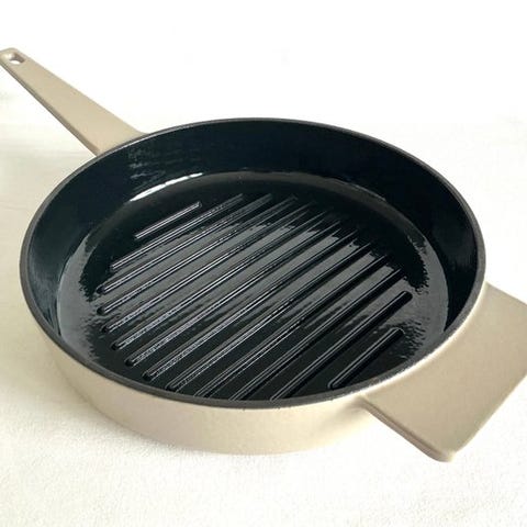 En støbejernspande udstyret med et system placeret under låget, der skaber bølger: Kondensationen, der dannes under tilberedningen, bliver til dråber, som drypper kontinuerligt ned på maden for at bevare dens mørhed.