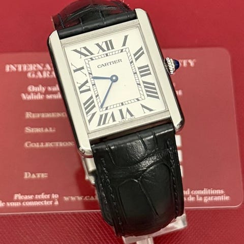 Cartier Tank Solo XL ur i rustfrit stål hus, automatisk herreur, reference 3515/W5200027, diameter 31 mm, hvid skive, læderrem, periode 2010–2020, i meget god stand med mindre brugsspor. Klik på den blå "gå til varen" knap, for at købe eller byde på denne vare. Den samlede pris vil blive vist inden du afgiver dit bud.