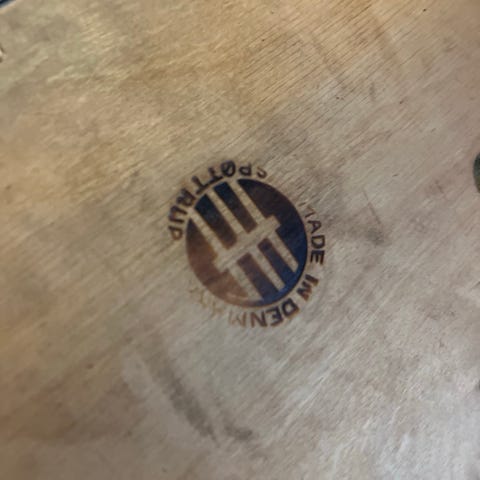 Spøttrup skammel med stel i træ (tænker at det er teaktræ) og sort sæde.