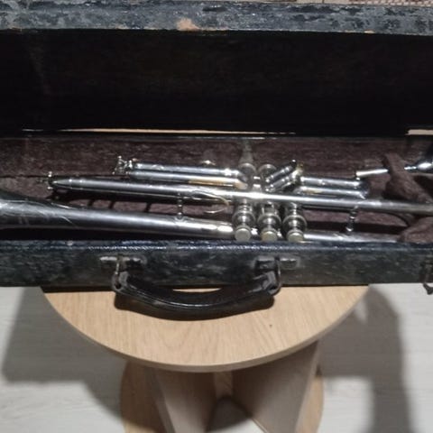 Trompet i tonart B Luxor LT100. Firma tilknyttet det tyske mærke B&S. Instrumentet i fremragende stand, meget let brugt. Alle bevægelige dele fungerer meget godt, ventilerne har en fremragende bevægelse. Instrumentet er rent, smurt, olieret – klar til at spille. Medfølger et originalt, holdbart og let etui, nyt mundstykke GEVA 7C samt læderbeskyttelse (beskyttelse af ventiler). Kurerforsendelse. Jeg kan varmt anbefale.