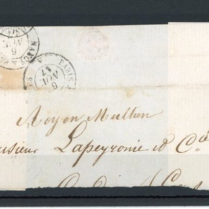 Fransk oprindelse frimærke med titel “Superbe 25cts bleu laiteux seul sur lettre, cote 550€”, i oblitereret stand, fra 1854, katalogiseret som Yvert n°15a, ingen certifikat. Klik på den blå "gå til varen" knap, for at købe eller byde på denne vare. Den samlede pris vil blive vist inden du afgiver dit bud.