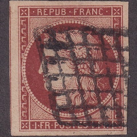 Oprindelse Frankrig, 2c brun-rouge underskrevet Calves RARISSIME TTB, tilstand oblitereret, certifikat inkluderet, katalog Yvert nr. 40Ab. Klik på den blå "gå til varen" knap, for at købe eller byde på denne vare. Den samlede pris vil blive vist inden du afgiver dit bud.