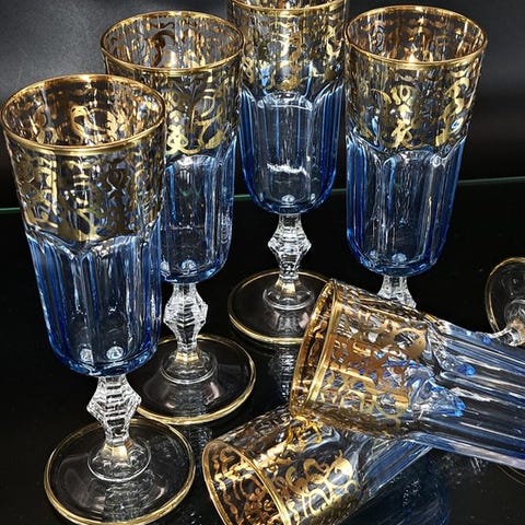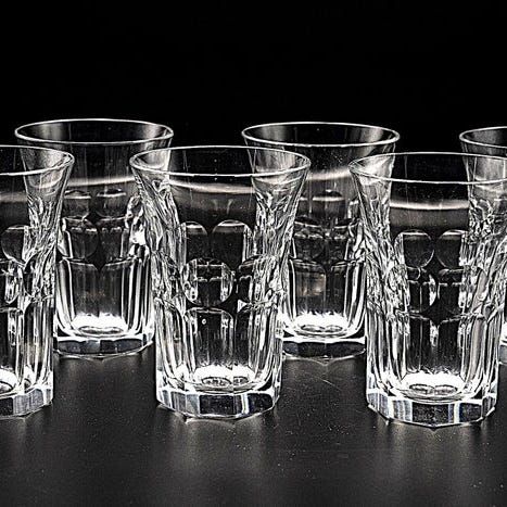 Luksuriøst service med 6 fluteglas i slibekristal, håndlavet, mundblæst og udskåret af den berømte Cristalleria Moser, model Heilbrunn.