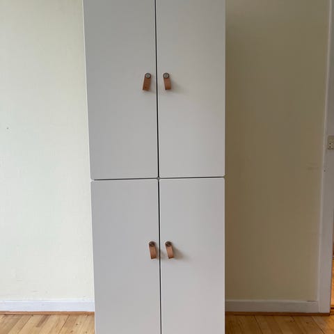Garderobeskab, hvor der er en normal bøjlestang i den øverste del af skabet , og i den nederste del af skabet er der en bøjlestang , der sidder på tværs, og trækkes ud som en skuffe.