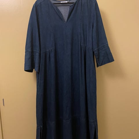 Fin blå MASAI kjole i str M. Bm ca 55cm. Længde fortil ca 96 cm, Længde bagtil ca 115cm.