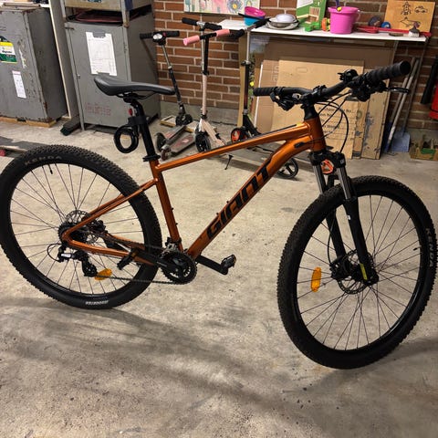 Giant Talon 1 Hardtail mountainbike med M stelstørrelse og 29" hjul. Cyklen er udstyret med brede dæk egnet til kørsel i terræn. Velegnet til både skovstier og almindelig hverdagskørsel, hvor der er behov for en robust cykel med store hjul og god stabilitet. Har hydrauliske skivebremser. Og 22 gear.