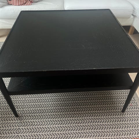 Rigtig flot bord uden mærker. Pladen kan løftes så man kan side i sofaen og spise. Opbevaring i bordet. 70x115 cm. Afhentes Fjenneslev
