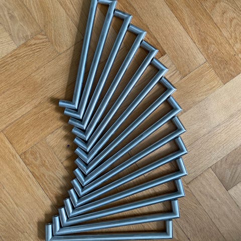 Sælger 11 stk. moderne kvalitet greb i børstet rustfrit stål.