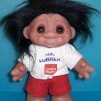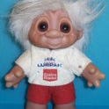 Super sød Dam trold med reklame filt trøje og røde bukser Reklame for Ekstra Bladet og Lurpak smør. (15)