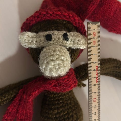 Denne abe er model "lille" (18,5 cm), og i FSC®-certificeret teak. Sweateren er malet og printet med stor præcision, så selv de mindste detaljer står tydeligt frem – helt i tråd med Kay Bojesens humor og håndværkstradition.