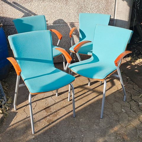 Anvendt som flot farveindslag som spisestue stol, spisebordstol stole med et hvidt Piet Hein super ellipse bord, men kan ligesåvel bruges som stol i kontor, gæsteværelse, børneværelse m.m.