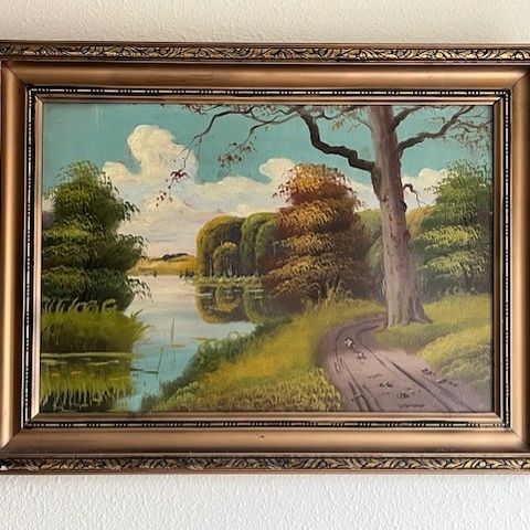 Antik maleri af vand og kyst.