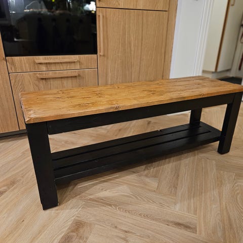 Fin og robust bænk i massivt fyrretræ. Længde 160 cm.
