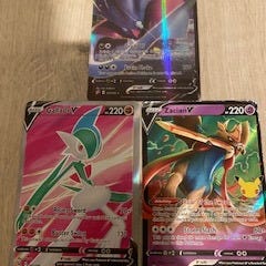 Pokémon Zacian V samlekort. Kortet viser Zacian V med 220 HP og er et holografisk Pokémon-kort i beskyttende plastlomme. Velegnet til samling eller spil i Pokémon Trading Card Game.