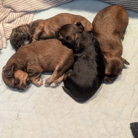 Far er Bichon Havanaise og mor er en blanding mellem Bichon Havanaise og Jack Russel.