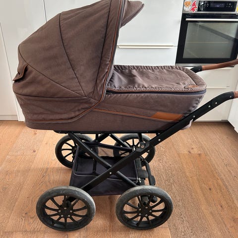 Vi sælger vores elskede stork barnevogn. Vognen fungere upåklageligt og er med langt liggemål og indbygget solskærm.