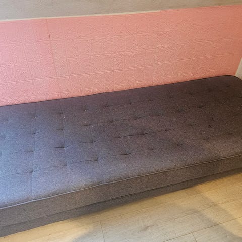Smart og praktisk puf med indbygget seng. God madras, stabil konstruktion, nem håndtering. Er i rigtig flot stand (skal afhentes)