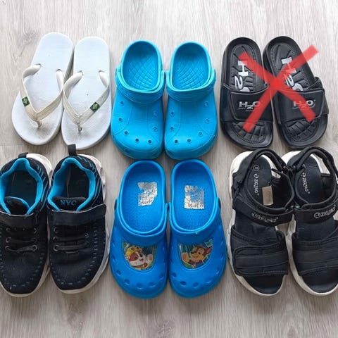 Skopakke med 8 par sko i str. 28 indeholder: 1 stk. Marvel sandal, 1 stk. Bundgaard sandal, 1 stk. Paw Patrol havesko, 1 stk. Badesko, 1 stk. Puma fodboldstøvler, 2 stk. Next gummistøvler (Spider-Man Pokémon), 1 stk. Angulos vinterstøvler. Brugt men ok stand. Fra hjem uden dyr og røg. Sælges kun samlet.