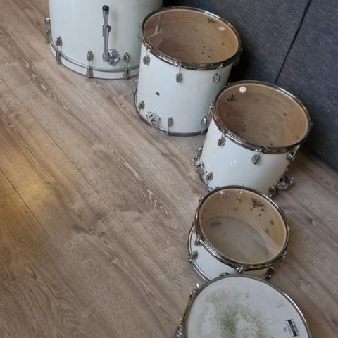 Sættet: 12X8"13X10"15X15"&22X16" incl tom holder og ben til floor tom. 13"&22" er coatede (fint håndværk) i god kvalitet.