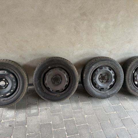 næsten helt nye dæk og stål fælge