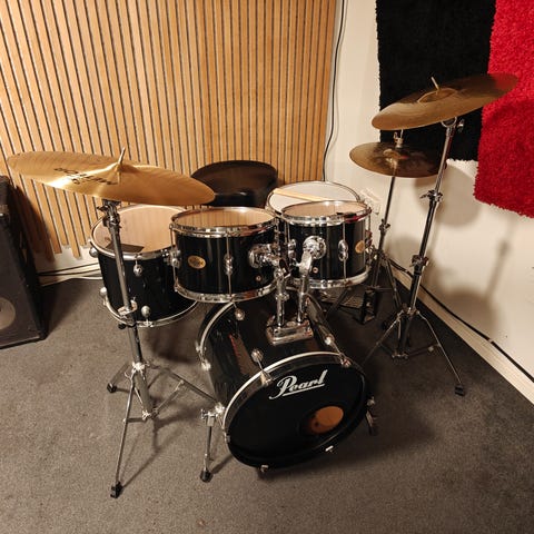 Flot og helt nyt Pearl sæt som kun har stået i øvelokalet, i racing red color sælges grundet hussalg. Sættet lyder fantastisk og fremstår som nyt. Der medfølger ingen bækker eller hardware med til sættet, kun tomholdere til alle Toms samt ben til floor toms. Prisen er fast og ikke til forhandling. Sælges under halvdelen af nyprisen.