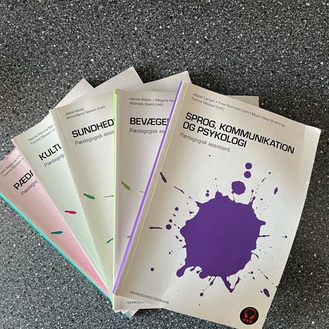 Samling af bøger til pædagogisk assistent uddannelse