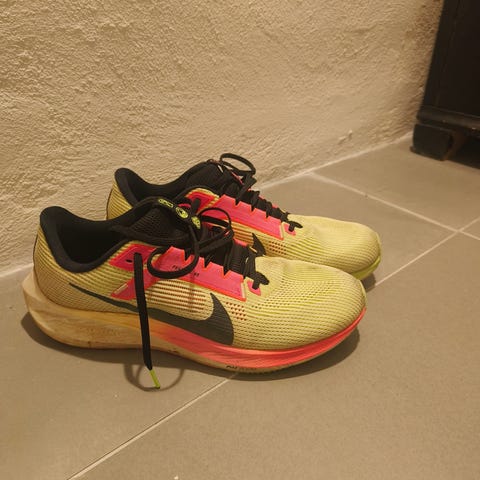 Nike løbesko til løb i størrelse 45. Overdel i mesh med snørelukning og polstret hælkappe. Skoene er flerfarvede med blandt andet neon- og pinkdetaljer samt sort logo. Ydersål med mønster for greb ved løb på faste underlag. Velegnet som løbesko til træning og hverdagsbrug afhængigt af behov.