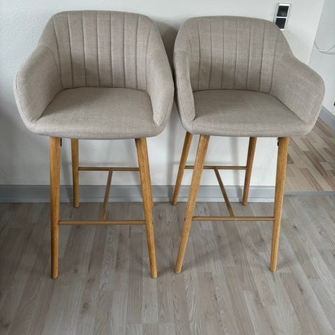 2 barstole fra Sinnerup som kun har stået til pynt, aldrig brugt.