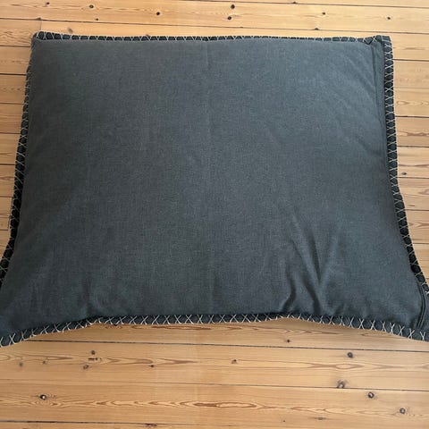 Pæn i betrækket. Slidt i syningen til højre. Men fungerer som den skal.