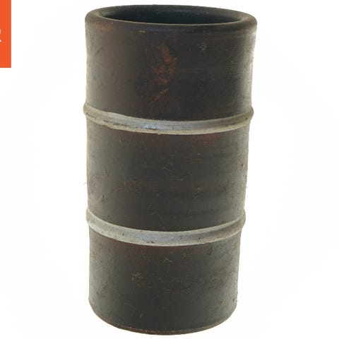 Denne keramiske vase fra Tysk producent, den har en højde på 17 cm. Den er grå med et mønstrede dekorative element ved basen, og den har en indsnævrende hals, der giver den en elegant form. Bunden af vasen har et stempel eller markering med nummeret 244. Den er lavet i et glaseret finish, hvilket giver den en skinnende overflade. Tags: vase, keramik, dekoration.