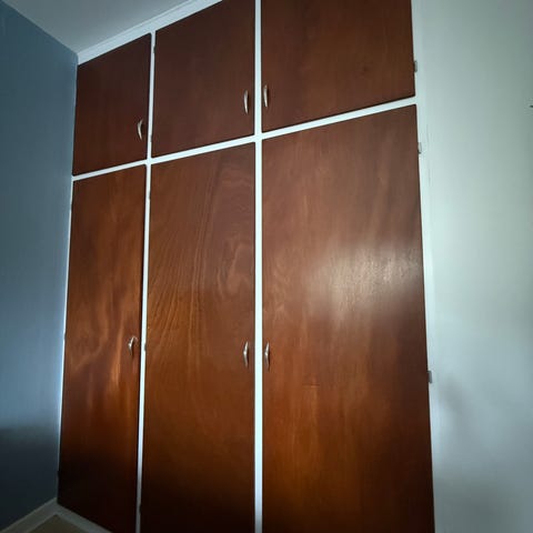 Skabslåger i retro. Lågerne fremstår i en varm farve med synlig årestruktur. Velegnet som låger til garderobeskab, opbevaringsskab eller gør-det-selv projekter, hvor der er behov for udskiftning eller tilføjelse af låger. Vi har måttet udskifte lågerne til skydedørs arrangement, da der ikke er plads til oplukkelige låger. Der er en låge til et 50 skab og 2 låger der passer til et 60er skab. Prisen er pr stk.