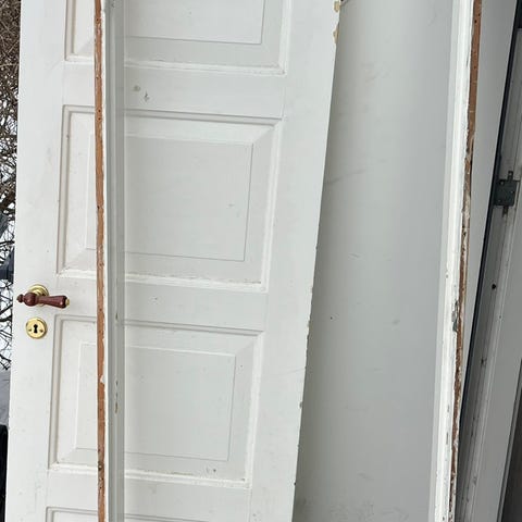 Hvid indvendig fyldningsdør med flere glasfelter.