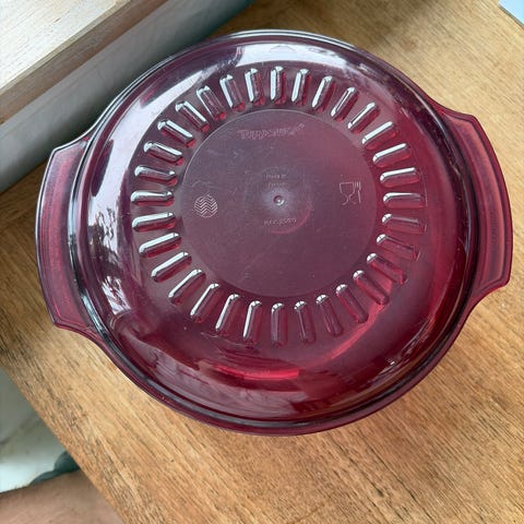 Tupperware MicroPro Steamer i rød plast. Designet til mikrobølgeovn, velegnet til dampning af madvarer. Materialet er holdbart og let at rengøre.